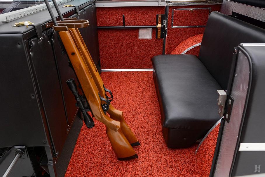 Просторный салон был разделен на два отсека: для проводников и для охотника. Спереди — три кресла-«ковша», установленные плечом к плечу, магнитола и СиБи-радиостанция. Сзади — диван, раскладывающийся в кровать, оружейный ящик и упоры для винтовок.