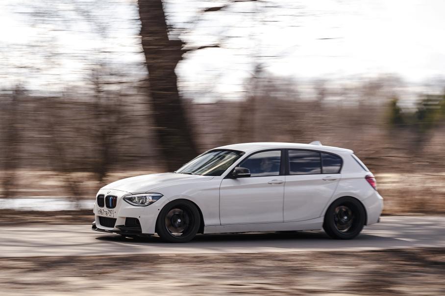 В своё время BMW 1 серии была популярной дамской моделью. Но компактность и лёгкость, заднеприводная платформа, унификация со старшими моделями и большой выбор тюнинга — всё это в сочетании с невысокой ценой обратило на поколение F20 внимание охотников за доступными драйверc-карами. Автоспорт случился с этой белой копейкой ещё в Барнауле. Откуда нынешний владелец забрал её в Москву и подверг дальнейшей модификации под свои нужды.