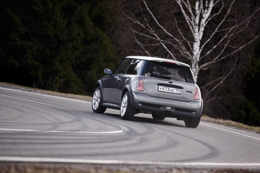 Саундтрек у двигателя приятный: если в BMW слышны привычные вздохи и всхлипы наддува под умеренный рёв выхлопа, то в Mini звуковая доминанта — экзотический вой компрессора. На сбросе газа он сменяется низким басом выхлопной системы — очень недурно для стандартных компонентов гражданского автомобиля. Дроссель Cooper S очень отзывчивый, без намёков на эко-задержки, которыми грешит более современная BMW. Поэтому играть тягой проще — результат действий лучше соответствует ожиданиям.