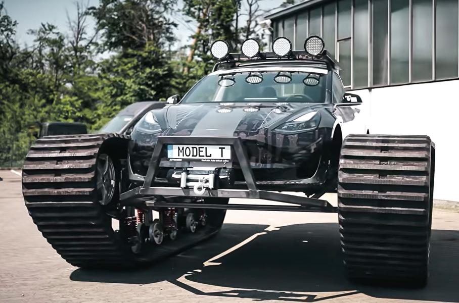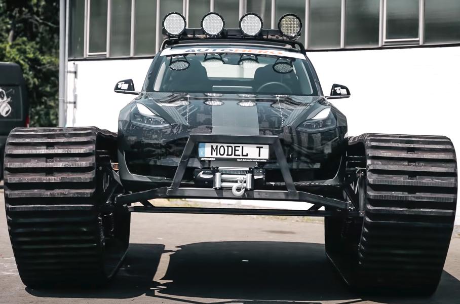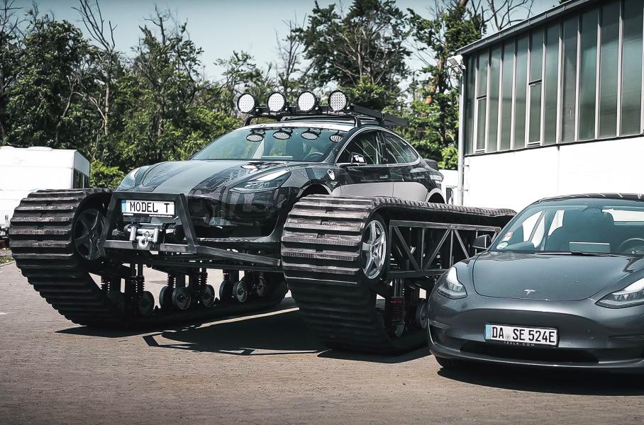 Немцы снабдили 1,3-тонными гусеницами американский электрокар. Работа заняла четыре недели, а масса получившегося транспортного средства с 800-миллиметровым клиренсом достигла шести тонн.