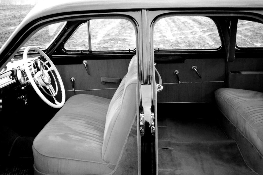 Специфическую конструкцию имели и петли капота: тяжелая крышка открывалась вбок, причем как на левую, так и на правую сторону. Еще одна занятная деталь — плафон освещения багажника. Он монтировался на крышке изнутри и имел ртутный выключатель. При открывании багажника жидкий металл перетекал внутри герметичной капсулы и замыкал контакты. Плафон ФП-12 применялся и на более поздних моделях ГАЗа, однако от выключателя с опасным металлом впоследствии отказались.