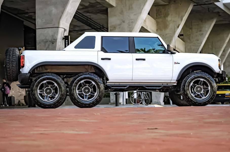 Ателье Apocalypse Manufacturing сделало из нового Ford Bronco шестиколёсный вездеход Dark Horse: изменены техника, облик и салон. Длина выросла до 5715 миллиметров.