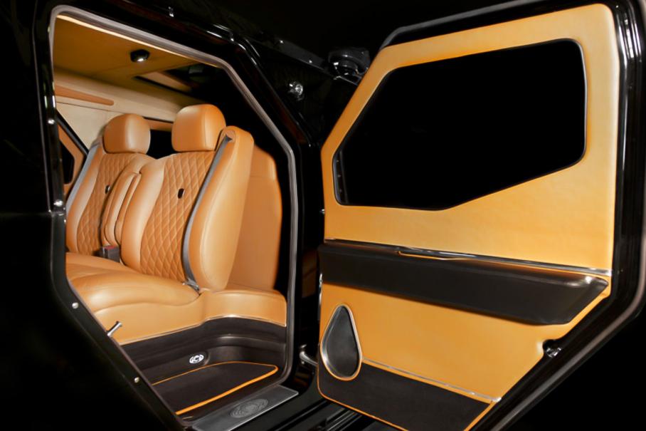 Внедорожник доступен в трех колерах — Stealth Black, Tactical Green и Desert Sand. Аналогичная палитра у семиместного Premium и люксового Executive с двумя генераторами, люком, особой отделкой кожей, экзотическими породами деревьев и покрытым хромом металлическими вставками, сдвинутыми назад раздельными сиденьями второго ряда, телевизором с 40-дюймовым экраном, спутниковым ресивером, развлекательной системой и интеркомом.