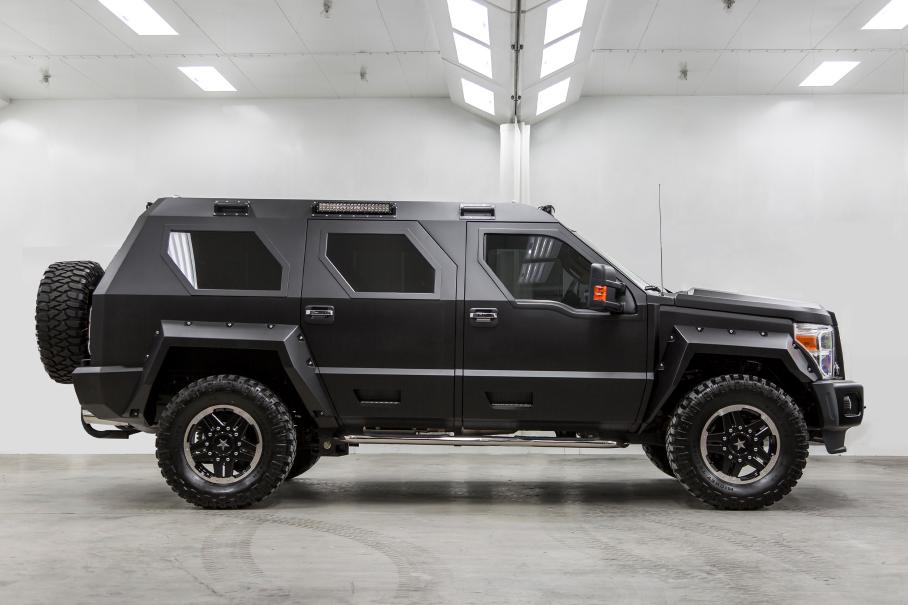 Предмет особой гордости представленного в 2008 году канадского «рыцаря» заключается в безальтернативном бронировании. Производитель подчеркивает, что вдохновленный военной техникой внедорожник изначально создан защищенным – из высокопрочных сталей, алюминия, арамида и керамики. В качестве отправной точки использовано рамное шасси пикапа Ford F-550 Super Duty.