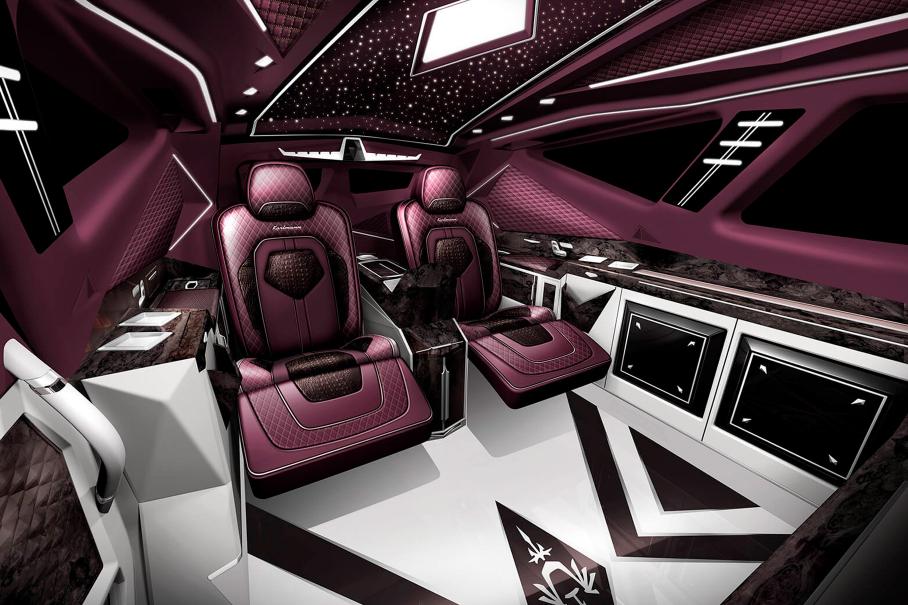 Почти тактический малозаметный ударный самолет-«стелс» Lockheed F-117A Nighthawk в обличье автомобиля, не правда ли? Вездеход умудряется комбинировать в себе несочетаемое — выраженные авиационные мотивы в экстерьере, имя в честь баварского короля Карломана 800-х годов и тщательно декорированный салон-дворец. Смешайте столь разные компоненты и мир ахнет — проверено!