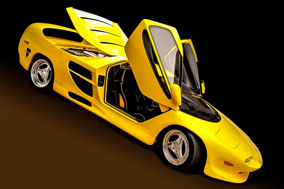 Vector M12 — наиболее приятный по дизайну суперкар в нашем списке. Но у Питера Стивенса, нарисовавшего эпохальный McLaren F1, гармонии тоже не случилось. Квадратные арки не вяжутся с образом покорителя высоких скоростей, интегрированное в филейную часть антикрыло смотрится громоздко, колёса в саабовском стиле выглядят чужеродно, а воздухозаборники на боковинах такие большие, словно поотваливались куски стеклопластиковых панелей. Так и не скажешь, что в основе Вектора — красавец-суперкар Lamborghini Diablo. Американцы даже с пропорциями напортачили — сделали Vector длиннее, уже и выше донора.