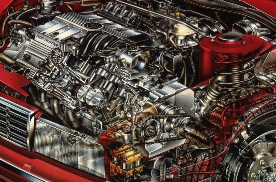 Двигатель Northstar во всей красе. За большой крышкой в торце — гидротрансформатор и цепь коробки GM 4T80