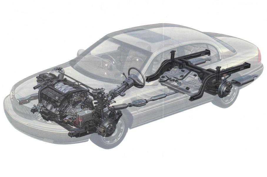 Двигатель V8 4.6 относился к новейшему семейству Modular. В первой половине 90-х моторы этой линейки только-только начинали ставить на большие заднеприводные седаны Ford Crown Victoria и Lincoln Town Car, а также купе Lincoln Mark VIII. Это был современный мотор с алюминиевым блоком и верхним расположением распредвалов — причём на Continental, как и на Mark VIII, установили самую продвинутую версию с четырьмя клапанами на цилиндр.