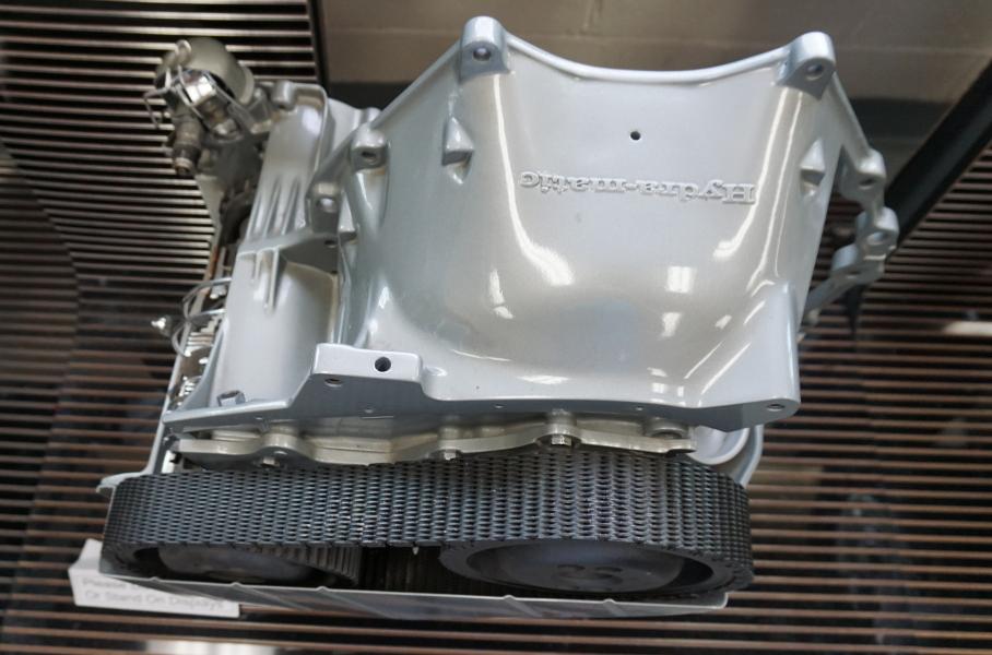 Силовой агрегат развернули поперёк, но схема трансмиссии очень напоминает ту, что была разработана инженерами Олдсмобиля в шестидесятые. «Автомат» размещался позади поперечно установленного мотора: в длинном корпусе параллельно коленвалу размещался блок планетарных передач вместе с межколёсным дифференциалом. Момент на «планетарку» передавался при помощи зубчато-пластинчатой цепи Морзе. Такая компоновка на много лет стала стандартной для машин с поперечно расположенным мотором и автоматической трансмиссией!