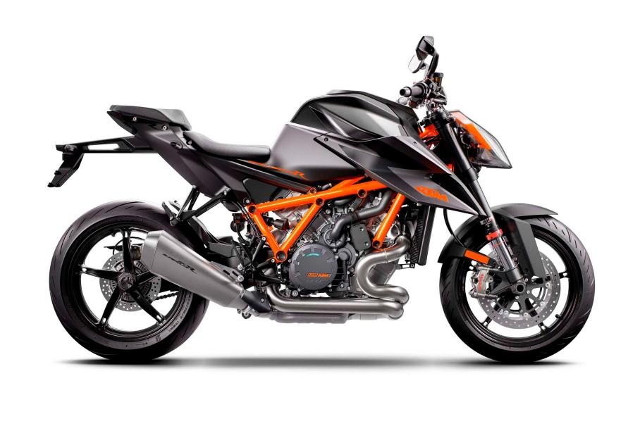 Вершина дорожной линейки «оранжевых» — свирепый 1290 Super Duke R. Посмотрите на него, и вы поймете, как выглядит зло во плоти. Компания называет модель The Beast («Зверь»). Прозвища точнее не придумаешь! Байк «сухой» массой немногим менее двух центнеров вооружен здоровенным 1301-кубовым V-твином LC8 мощностью 180 л.с.