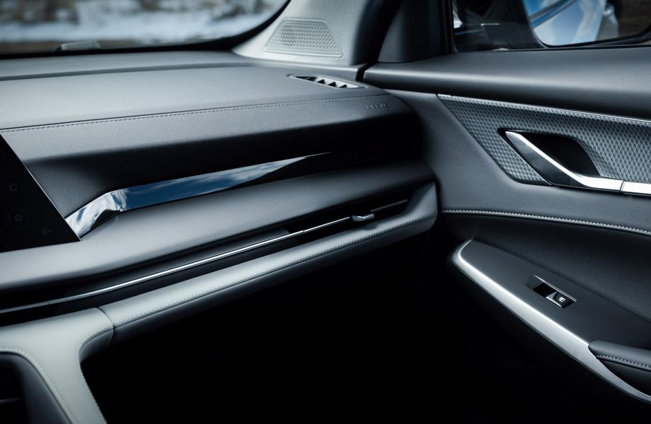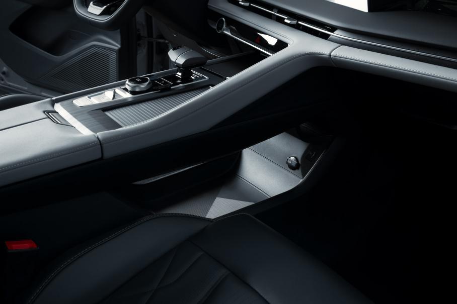 В остальном можно рассчитывать на довольно богатый набор оборудования. Это 19-дюймовые колёса, панорамная крыша, Apple CarPlay, беспроводная зарядка, камеры 360, адаптивный круиз и другие ассистенты (кстати, весьма деликатные), электробагажник (отсек которого почему-то лишён банальной шторки), проекционный экран и другое.