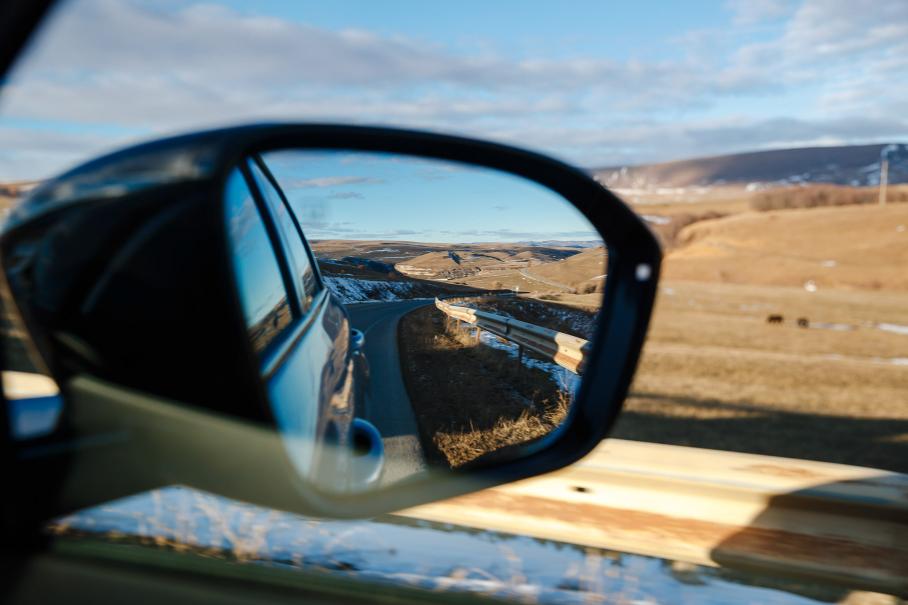 Из обнаруженных дефицитов — отсутствует Android Auto и подогрев второго ряда, а также здесь всего одна зона климата. Зато есть фильтр частиц PM 2.5 и датчик чистоты воздуха внутри и снаружи. Который во время очередной остановки пофотографировать открывшийся вид оповестил о проблеме.