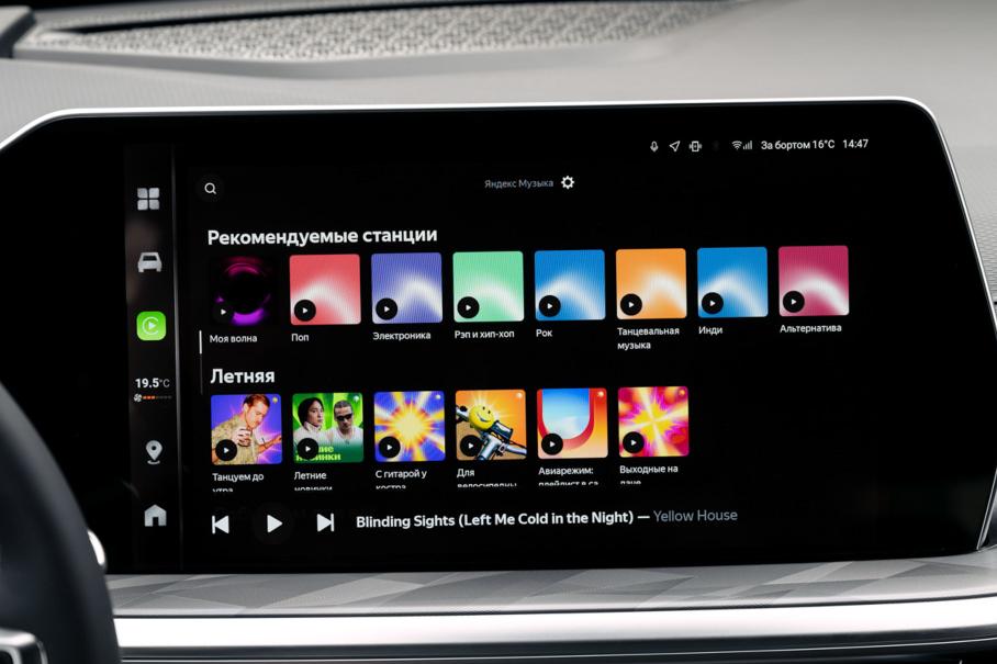 А ещё встраивание навигации и музыки в мультимедийную систему позволило обойтись практически без ограничений функционала приложений, неизбежного в их карплей-версиях. На экране автомобиля доступно практически всё то же самое и точно так же, как и в смартфоне. Включая отображение парковок в картах, а позже обещают и поддержку сервиса Яндекс заправки. В «Музыке» после входа в учетную запись доступны плейлисты и рекомендации.