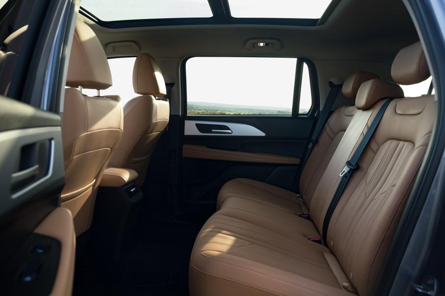 Простор на втором ряду просто царский, что не удивительно для автомобиля с такой колёсной базой. Третий ряд для модели не предусмотрен даже на китайском рынке, поэтому сиденья здесь не регулируются в продольном направлении, но спинки можно немного откинуть. При всём гигантском запасе свободного пространства для людей любого роста, очень расстраивает отсутствие центрального подлокотника. Да и ещё один USB-порт тоже было бы неплохо добавить.