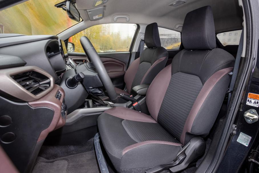 Отличные характеристики управляемости проявляются на двух уровнях. Обычный водитель отметит простоту совершения манёвров, быстрые и понятные реакции автомобиля. Малый радиус разворота, невысокое усилие на руле, увеличенный клиренс — всё это позволяет чувствовать себя комфортно в любой обстановке, за исключением скоростной трассы. Для автомагистралей маловато и моторчика, и возможностей древнего 4-ступенчатого автомата. Но если не брать в расчёт скоростную езду по прямой, то Fronx порадует и энтузиаста азартного стиля вождения.