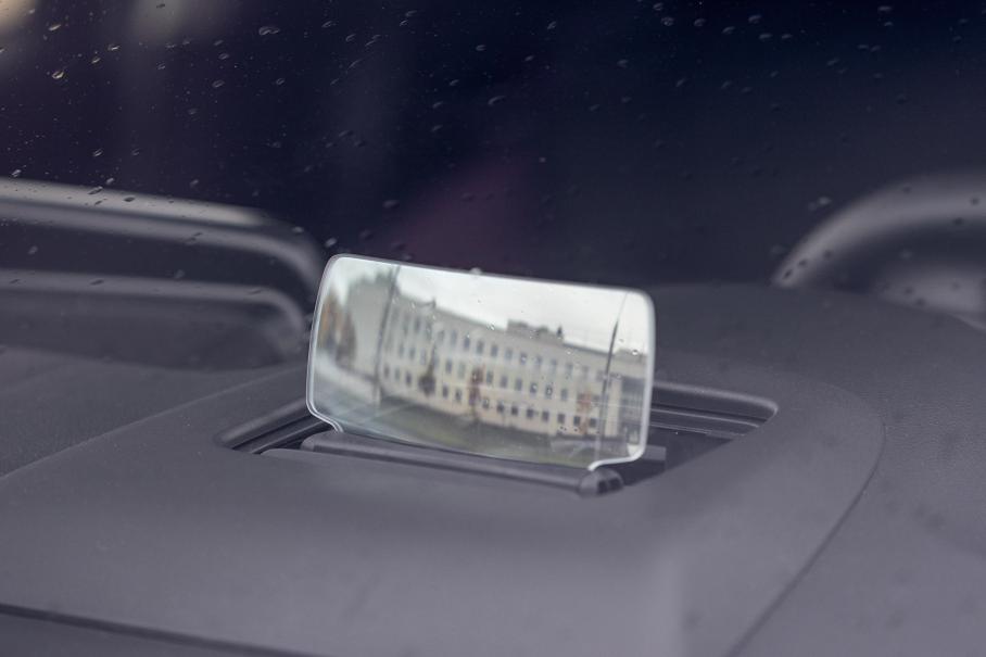 Салон встречает простым дизайном, бюджетными материалами и базовым набором удобств, без украшательств и функциональных излишеств. Но при этом есть общее ощущение качества и продуманности, а также присутствует пара неожиданно классных решений. Первое — это проекционный дисплей, выполненный в виде отдельного «авиационного» стёклышка. Которое под жужжание сервопривода изящно выезжает из плоскости передней панели и создаёт боевое настроение у «пилота». Полезная и хорошо реализованная опция, нехарактерная для моделей этого класса.