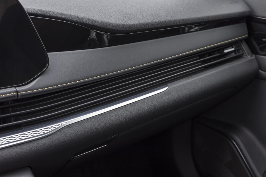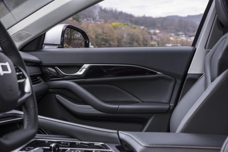 В остальном претензий к салону нет — по крайней мере, пока автомобиль стоит на месте. Материалы соответствуют классу модели, дизайн имеется, оснащение достойное, за исключением отсутствия обогревов заднего ряда, руля и ветрового стекла. Зато во всех комплектациях есть CarPlay и Android Auto, а топ-версия отличается от младших в основном набором средств безопасности, размером колёс, наличием беспроводной зарядки и максимальной иллюминацией как внутри (контурная подсветка), так и снаружи (рисунок волны в задней оптике, проекция логотипа).