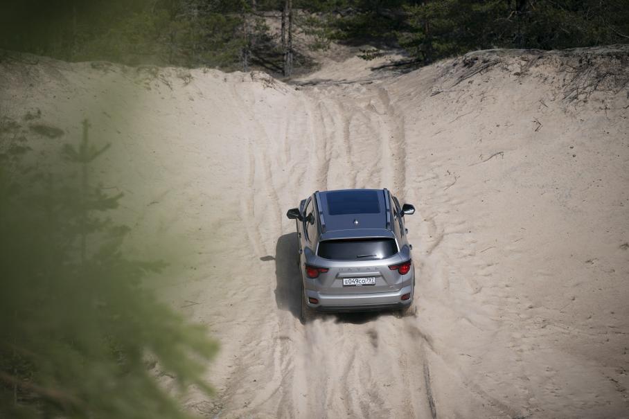 Даже задачки на внедорожную геометрию вроде крутых подъёмов и спусков по ухабам с диагональным вывешиванием Haval H7 проезжал так же уверенно, как более компактный сородич. Прочие виды засад — движение по глинистому траверсу или маневрирование в тесном лесу — H7 также преодолевал наравне с Dargo. А какие-то задачи давались ему даже чуть легче. Например, во время быстрой езды по разбитой грунтовке H7 был как будто немного стабильнее за счёт всё той же увеличенной базы.