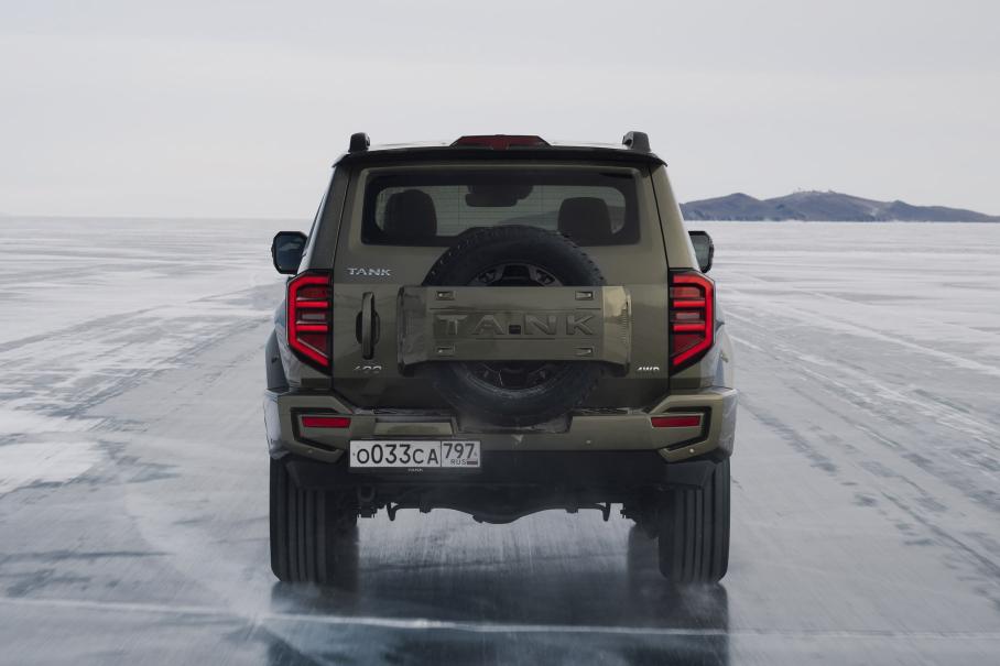 Перед нами увеличенный Tank 300 или Tank 500 для приключений? Верно и то, и другое!Дизайн Tank 400 не похож ни на 300, ни на 500. Но уникальным его всё равно не назвать: полгода назад на внедорожном фестивале в Китае я с трудом мог отличить Tank 400 от флагманского 700. Но два дня в колонне четырёхсоток на байкальском льду натолкнули на интересную ассоциацию: если старшая модель не стесняясь намекает своей внешностью на G-Class, то Tank 400 напомнил… Niva Travel! Здесь тоже вздёрнутая к корме оконная линия, трапециевидные фары, C-образная графика фонарей и развитые накладки на арки. По последним Tank 400 опознать проще всего — они закреплены выставленными напоказ болтами с головкой под торкс.