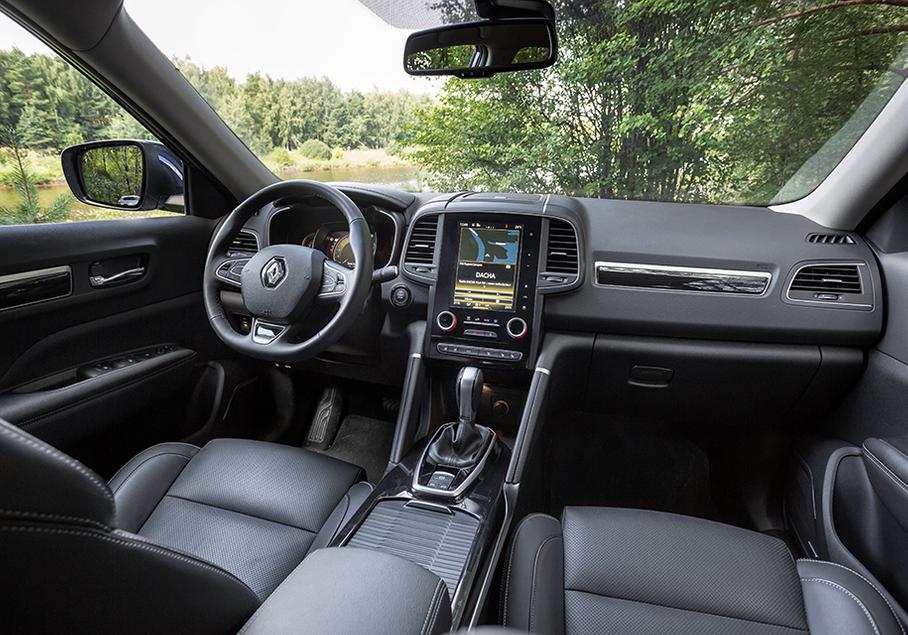 У интерьера Koleos интересный дизайн, выстроенный вокруг планшета на центральной консоли, но материалы отделки чуть проще, чем у конкурентов.
