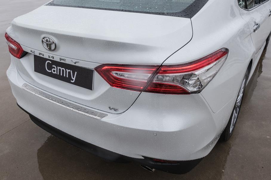 В зависимости от модификации, у новой Camry будет доступен и 10,5-дюймовый проекционный дисплей, и большой экран бортового компьютера, занимающий все место между колодцами спидометра и тахометра, а также расширится список электронных помощников и ассистентов. Добавятся 18-дюймовые колеса (раньше 17-е были максимально возможными) и полностью светодиодные фары и задние фонари. Полностью – это значит, что на основе LED-источников тут сделаны даже поворотники. Наконец, название седана теперь пишется на крышке багажника и в рекламных буклетах новым шрифтом!