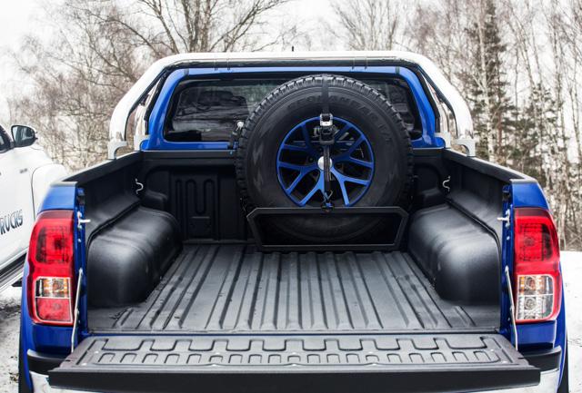 По умолчанию список доработок модели AT35 ограничивается только теми, которые необходимы для установки 35-дюймовых колес. Это лифт передней подвески на 45 миллиметров, расширители арок и, собственно, сами колеса: 17-дюймовые диски Arctic Trucks из алюминиевого сплава и специально подготовленные шины 35×12,5 дюймов.