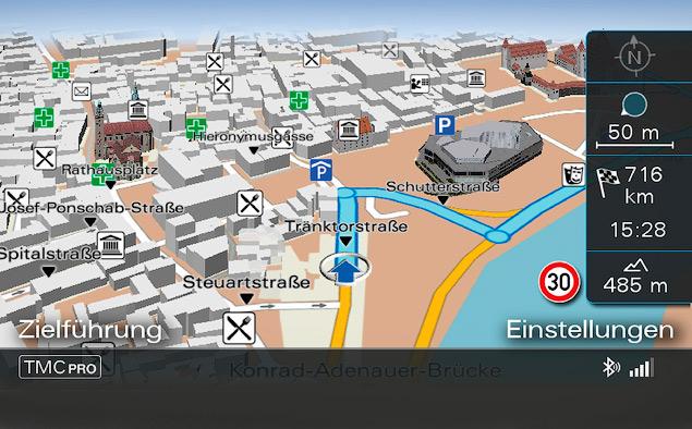 Для прокрутки карты двигаешь джойстик в бок, а он то и дело срабатывает как на кнопка "энтер", и система тут же предлагает проложить маршрут к новой цели. Карты Google со спутниковым изображением выглядят здорово, но на узких улочках Лиссабона система «подтормаживает» и не успевает мгновенно показать нужный поворот. Умилил и перевод меню на русский язык. Например, прибавляешь звук у аудиосистемы, а на дисплее отображается надпись «развлекательная громкость».