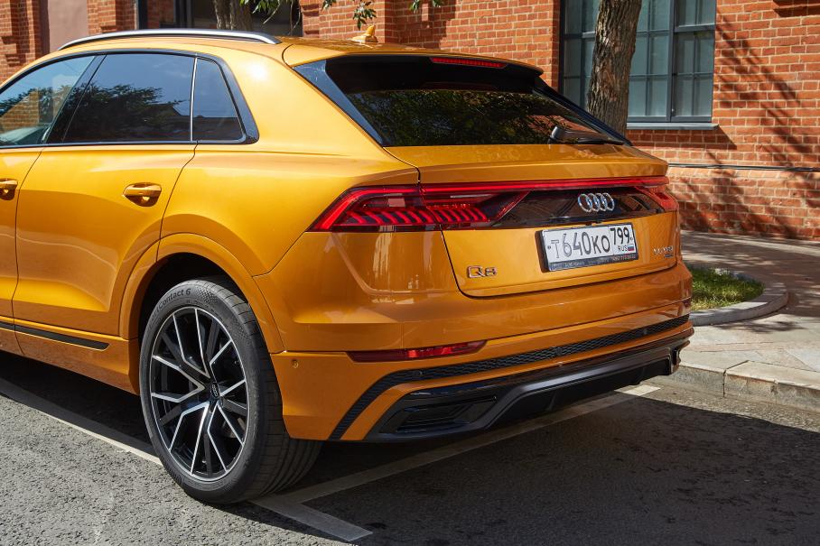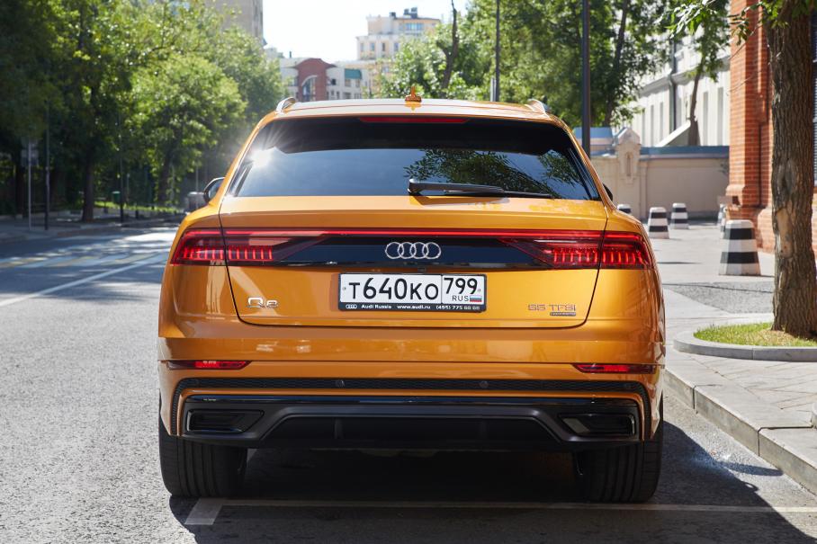 Мускулистое тело с мощными плечами колесных арок, агрессивное лицо, огромные 22-дюймовые «катки», выразительная светотехника — по концентрации эпатажа Q8 в рекламном цвете Dragon Orange уступает разве что Урусу. Головы сворачивают все: пешеходы, таксисты, владельцы прямых конкурентов, дамы на Рейндж Роверах и даже дяди на «Крузаках». Особенно приятно, что в Audi решились на безрамочные двери.