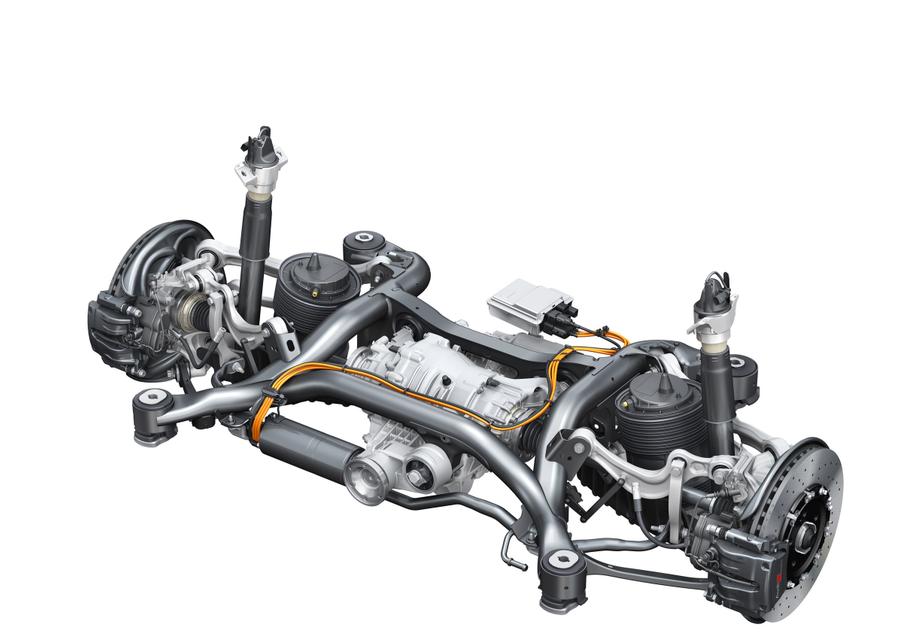Два турбокомпрессора с изменяемой геометрией расположены в развале блока и нагнетают основную массу воздуха, а электрический компрессор, работающий от 48-вольтовой сети, установлен после одного из интеркулеров и призван помогать основным «улиткам», чтобы уменьшить «турбояму» и обострить отклики на педаль газа. Хитрый перекрестный выпускной коллектор сделан таким образом, что одной турбине соответствует только один из двух выпускных клапанов каждого из цилиндров. Первая турбина работает постоянно, а вторая подключается на высоких оборотах в режиме больших нагрузок, когда составной распредвал переключается на работу всех шестнадцати выпускных клапанов. Ну, а электрический нагнетатель, раскручивающийся до 70 000 об/мин меньше, чем за 0,25 с, активируется лишь периодически, чтобы ускорить рост давления воздуха на впуске. Абсолютный максимум «буста» — 3,4 бара.