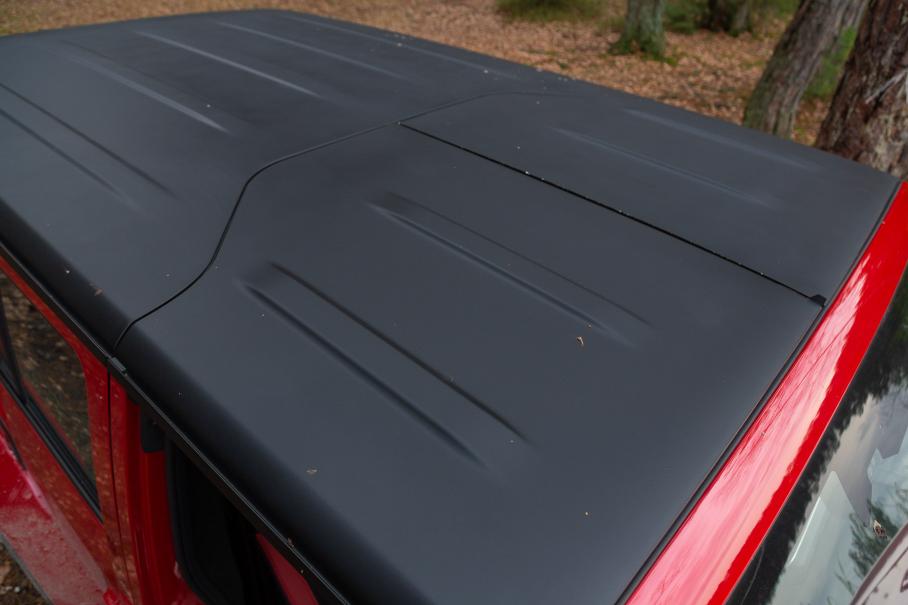 Но в действительности нарисованная воображением красивая картинка разудалой эксплуатации BJ40 с ветром в волосах и песком на зубах разбивается о суровые реалии. Максимум, что можно снять с кузова быстро и без особых усилий (не считая запаски и «дворников») — две секции крыши над первым рядом сидений. Чтобы получить своеобразную четырёхдверную таргу, нужно повернуть девять защёлок на потолке и потянуть наверх крышу, стоя сбоку на порожке-подножке.