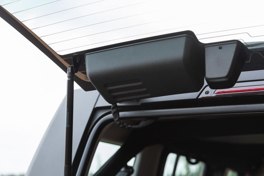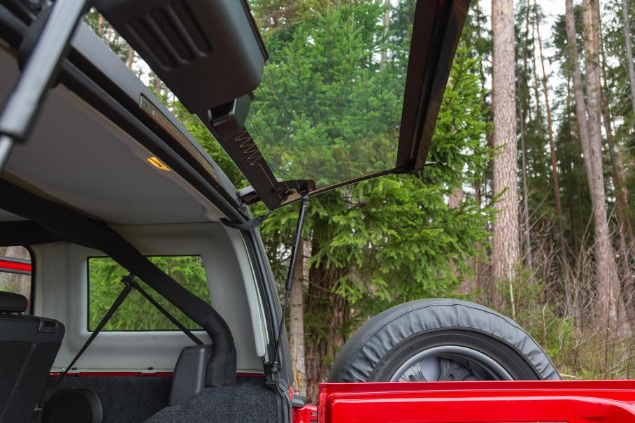 А вот демонтаж задней части крыши, в отсутствие которой автомобиль становится полноценным кабриолетом, требует наличия базовых навыков мастера-арматурщика — придётся технично поддевать крепления обшивки, отключать электрические фишки и иметь помощника для перетаскивания цельного пластикового колпака крыши. Во время теста заниматься этим, к сожалению, было некогда — оставим раздевание BJ40 на лето.