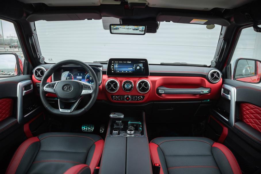 Хорошая тяга присутствует во всём доступном скоростном диапазоне — двигатель BAIC отличается от установленного в Tank мотора в основном лишь нюансами компоновки навесных агрегатов. В нём те же 218 л.с. и 380 Н∙м и заявленная динамика на уровне какой-нибудь Креты (реальная по ощущениям соответствует цифрам). Рулевое управление очень понятное и надёжное, можно даже шустрить в виражах с некоторым удовольствием. Разве что в парковочных режимах руль тяжеловат для такой скользкой кожи на ободе — приходится крепко в него вцепляться.
