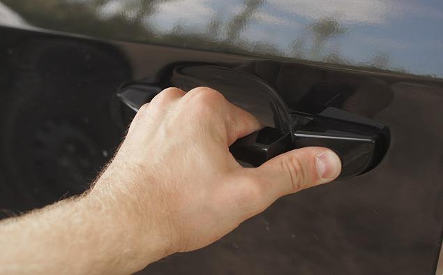 Открывается и закрывается машина кнопками с современного брелока с выкидным жалом.