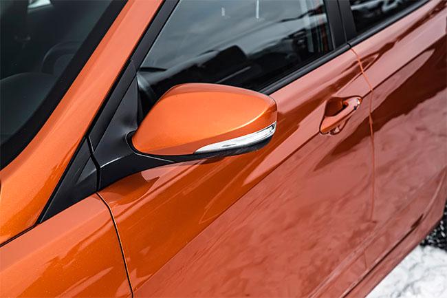 Выглядит Hyundai Solaris отлично. Экстерьер – первое, чем можно оправдать ссуду на его покупку. Симпатичные колеса, цвет с кисло-сладким названием Vitamin C, ниспадающая линия крыши. Правда, последний пункт вряд ли понравится пассажирам второго ряда: потолок сзади низковат.