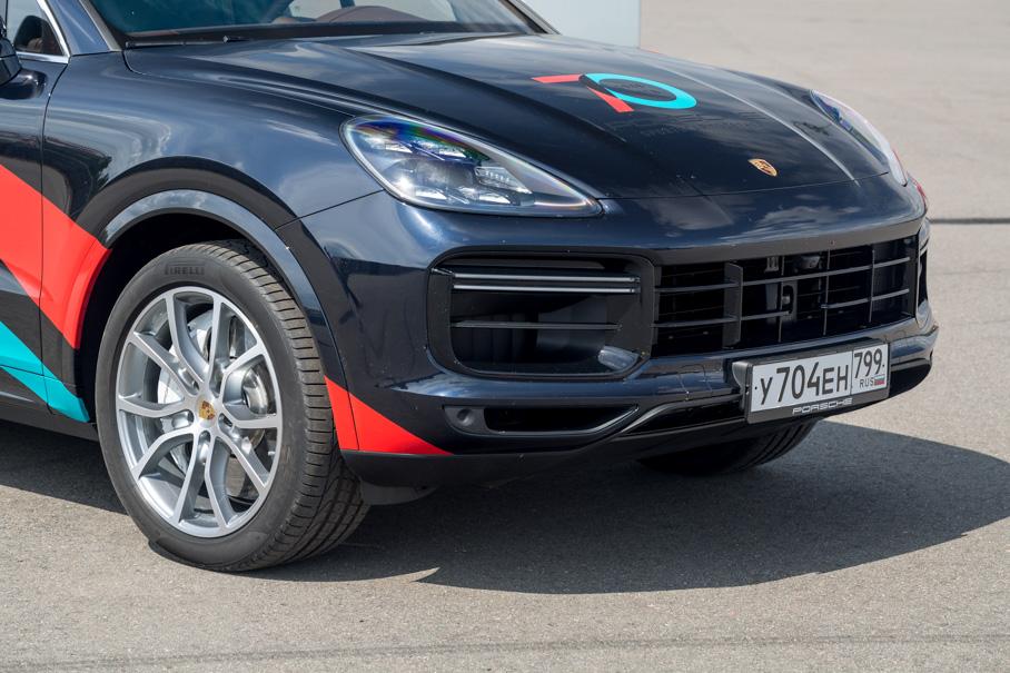 На Moscow Raceway, куда мы приехали для зачетных заездов, Cayenne действительно ощущается более легким и юрким. Он меньше кренится, активнее рулится газом (задний дифференциал Porsche — с простой электронноуправляемой блокировкой) и, видимо, благодаря полноуправляемости фантастически держится в ходовых поворотах, что особенно заметно в скоростном правом изгибе на спуске.
