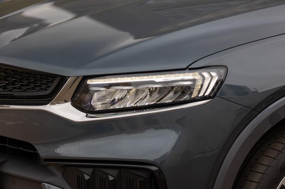 Подъезжая к месту съёмки на Uni-K, я переживал, что Tugella померкнет на фоне эпатажного конкурента. Но облик Geely не потерял актуальности, а рестайлинг сделал его ещё лучше. Все изменения подчёркивают уже доказанный кроссовером спортивный характер: решётка теперь состоит из чешуйчатых сот вместо своебразных неправильных эллипсов, декоративные рёбра в углах переднего бампера перевернулись в вертикальное положение, а патрубков выхлопа вместо двух стало четыре. Странно, что не больше, с учётом квартета стволов под бампером даже у младшего Coolray.