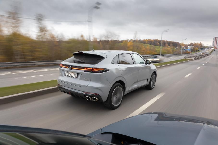 Но чтобы прочувствовать, как много удовольствия даёт водителю Tugella, надо прокатиться на Changan Uni-K. Он на 200 кг тяжелее, и это даёт целую пропасть в восприятии двух моделей. Динамика, несмотря на близкую мощность двигателей, не более, чем достаточная. Changan не сообщает официальных данных разгона, но по ощущениям это высокие 8 секунд. Автомат действует резковато, из-за чего на старте его иногда принимаешь за робот. Мотор работает шумно, с неприятными призвуками. А также чрезмерно вибрирует на холостых — особенно когда включается компрессор кондиционера.