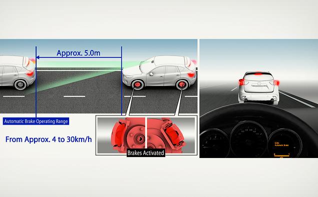 В CХ-5 дебютировали сразу несколько систем активной безопасности. Smart City Brake Support позволяет избежать столкновения на скоростях от 4 до 15 километров в час и значительно минимизировать последствия аварии на скоростях до 30 километров в час.