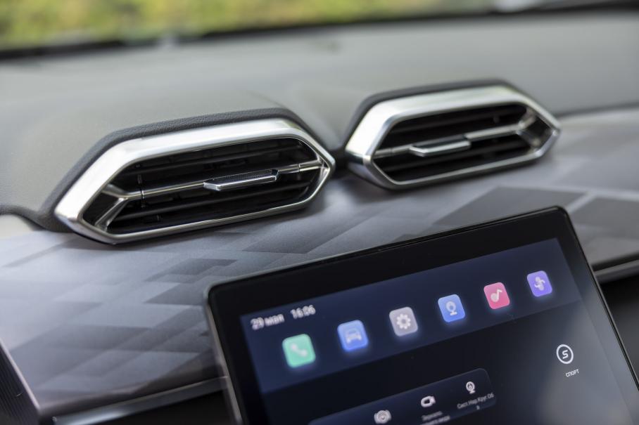 А вот интерьеры запомнились. У Mage низкая передняя панель в сочетании с расположением и формой воздуховодов напоминает о… Lamborghini! В остальном всё как сейчас принято: пара планшетов, нехитрый орнамент, нарядный (первую неделю) глянец, не слишком уютный минимализм. И с заметной оглядкой на Geely — в Mage такие же «обратные» курки стеклоподъёмников, а также интерфейс развлекательной системы с бесконечным скроллом перетекающих друг в друга разделов. Примечательно, что в мультимедийке существенная часть функционала заблокирована во время движения — без остановки не разрешается даже отрегулировать эквалайзер вполне приличной «музыки» Arkamys.