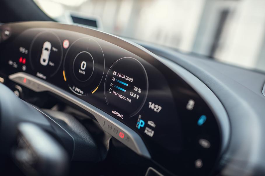 Меня насторожило то, что даже в режиме максимального запасания энергии, который активируется кнопкой на левой спице руля, я не ощутил значительного рекуперативного замедления при отпускании акселератора — те же «Теслы» клюют носом гораздо активнее! Проверим это ещё раз во время дорожного теста. Любопытно, что по сервисному регламенту проверять тормозные колодки следует… раз в 6 лет! Потому что основное торможение предполагается как раз-таки за счёт рекуперации.