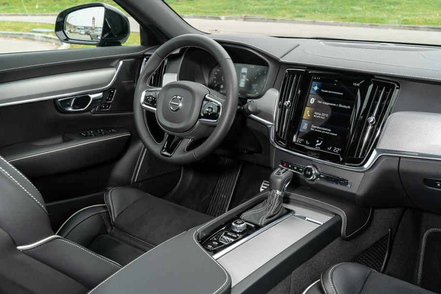 Volvo — это больше передвижная гостиная, чем автомобиль в привычном понимании этого слова. Обстановка и ощущения за рулём располагают думать о чём угодно, кроме вождения. Поэтому в плане динамики S90 ничего интересного не демонстрирует. С мощным турбомотором S90 имеет достаточный запас для обгонов и прочих резких манёвров (в отличие от менее тяговитого Мерседеса) — но преимущественно в сухую погоду. А в отсутствие полного привода тяга двигателя уходит больше в силовое подруливание, нежели в интенсивное ускорение.