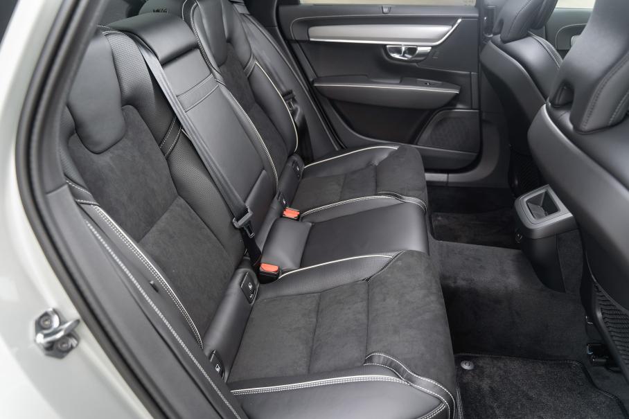 Рестайлинг S90 внутри ещё незаметнее, чем снаружи. Самая интересная из новых возможностей — опциональная отделка интерьера шерстью наподобие той, что используется в дорогой скандинавской мебели. Но такую нельзя заказать в версии R-Design — она сочетается только с более консервативной Inscription. USB-порты так же медленно, как в Мерседесе, заряжают мобильник, а беспроводная зарядка — опция за те же 24 тысячи. Зато сиденья тут классные, хотя у передних немного специфический профиль. А на заднем ряду есть небольшое преимущество в пространстве для ног перед и без того не тесным Е-Классом