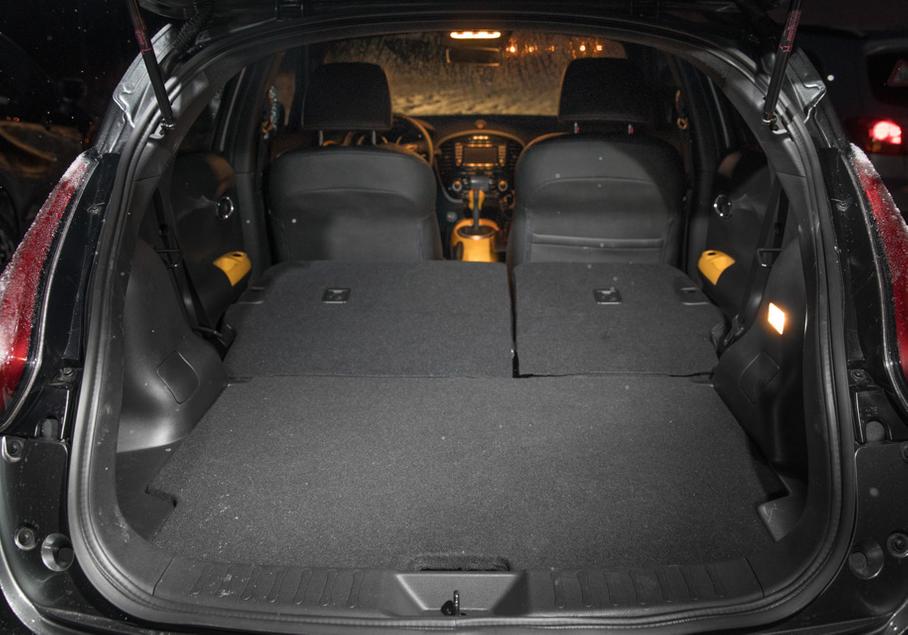 В этой дисциплине шансы «Джука» изначально близки к нулю. Багажник маленький не только по заявленным цифрам – 354 литра, но и по факту. Зато у «Ниссана» есть подпол, под которым прячется очень нестыдный отсек без лишнего хлама. Под этим подполом уместилась даже запаска. И вот это, с учетом габаритов Juke, неожиданно и приятно.