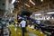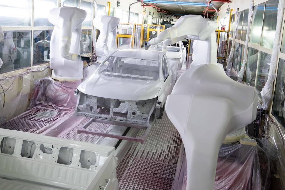 Но перед тем, как стать бусинками в ровных шеренгах, машины плыли по конвейеру, постепенно прикрывая наготу рамы деталями кузова. Большинство из них получали знакомую кабину-обмылок текущего L200, да еще и одинарную, придававшую автомобилю куцый и немного жалкий вид. Под основной веткой конвейера находилась бетонная траншея, где сновали рабочие в белых защитных касках.