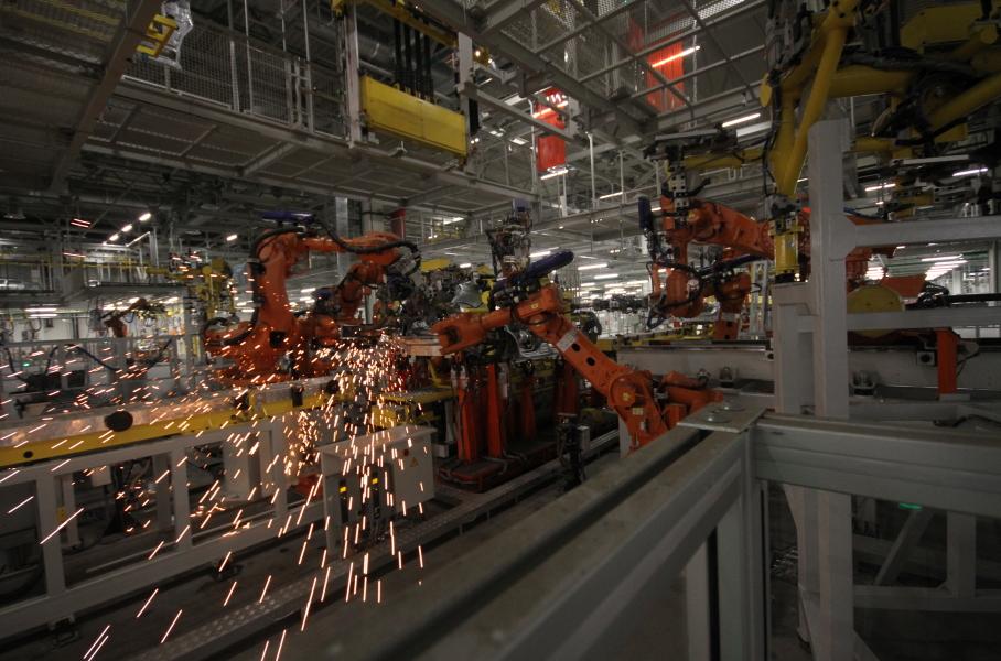 Между тем, завод-то серьёзный! В его строительство уже вложили полмиллиарда долларов, и это не просто площадка для отвёрточной сборки, а полноценное производство, причём широко автоматизированное — примерно на уровне домашних заводов в Тяньцзине и Баодине. С собственной штамповкой — тут стоит новенький пресс Fagor, с полностью роботизированной линией сварки, со своим производством пластиковых деталей интерьера (здесь делают обшивки дверей и багажника, а также защиту арок), ковровых покрытий и панелей потолка.