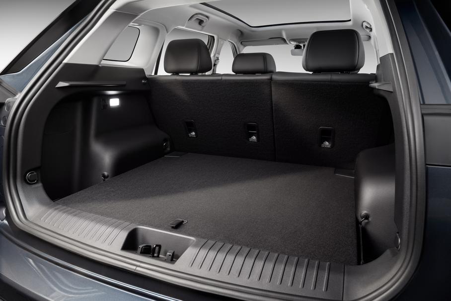 А вот багажник можно записать в один из козырей модели. Заявленные 480 литров при поднятых сиденьях — это больше, чем у многих конкурентов в классе. Под полом обнаруживается докатка, что для наших дорог аргумент весомый. Сложив второй ряд, получаем 1180 литров, правда, пол всё равно со ступенькой. Проем широкий, крупногабарит войдет без проблем, есть подсветка, электропривод и карманы с сетками, но нет розетки на 12 В.