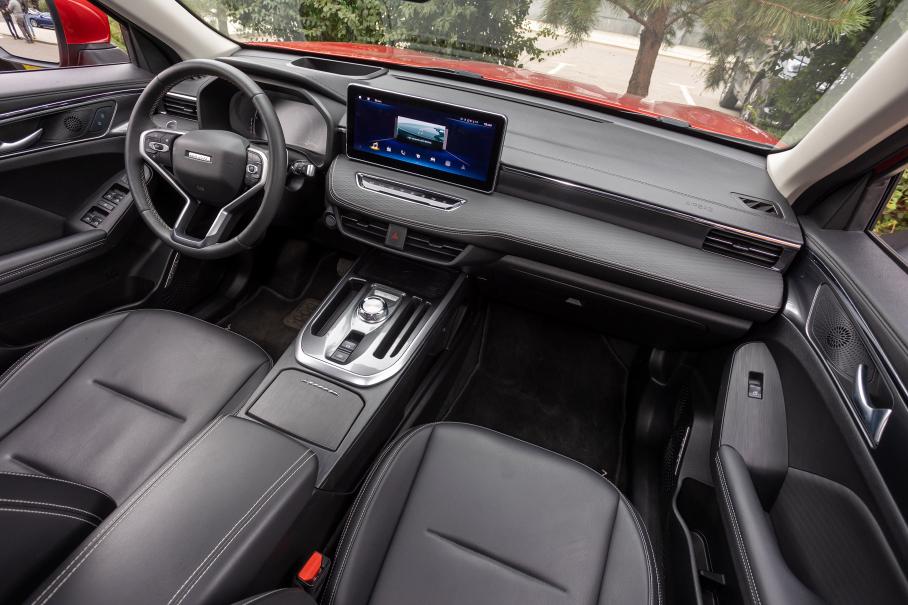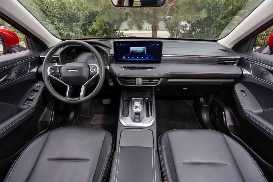 Внутри ситуация та же: интерьер Coolray демонстрирует буйство форм, а Jolion — стильную сдержанность. При этом функциональность и архитектура передней части салона очень схожи: это цифровые приборки и торчащие из панели дисплеи мультимедийных систем, «парящие» центральные консоли с вещевым отделением и портами питания на «цокольном этаже», орнаменты на решётках акустики (обе аудиосистемы играют примерно одинаково бледно), дизайнерская текстура на материалах отделки, пафосно выглядящие сиденья. Принципиальная разница между этими пространствами в том, что сзади Haval с его ровным полом и большей колёсной базой просторнее на втором ряду.
