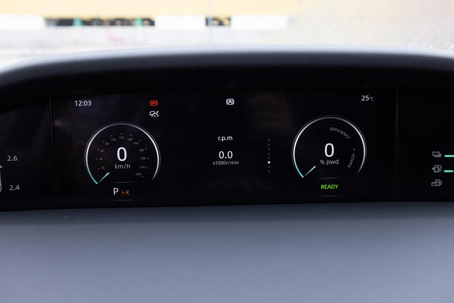 Третий режим движения — i-X — ещё один гибридный режим, в котором автомобиль сам решает, как и когда использовать первые два варианта работы силовой установки. Электроника их чередует по своему усмотрению, но по большей части, если верить графике на приборной панели, машина выбирала именно HEV.