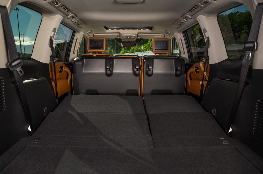Увы, интерьер по-прежнему кажется устаревшим и недостаточно премиальным. Кнопочки, регуляторы, крутилки — от ниссановских моделей, кое-где жесткий пластик, бардачок без ворса, холодильника нет (хотя соплатформенный и более доступный Nissan Patrol им оснащен), ну, а с электроникой прям беда… На приборной панели остался старый монохромный дисплей, мультимедийная система и картинка с камер кругового обзора тоже застряли в прошлом веке.