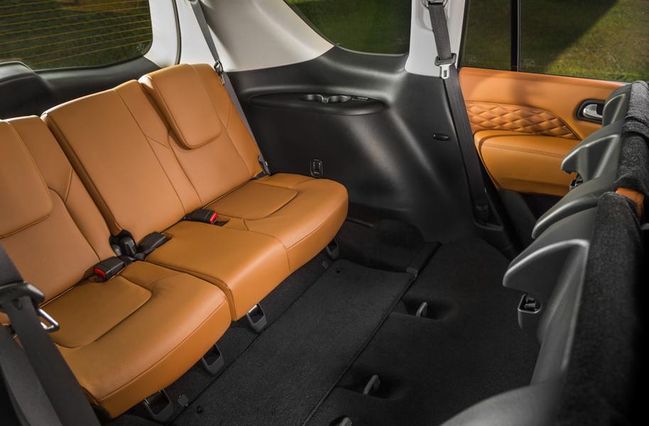 Слегка изменилась форма дверных панелей, на сиденьях появилась ромбовидная вышивка, накладка в центре руля и верхняя часть передней панели получили прострочку, рычаг «автомата» — как у модели Q60. Из полезного — более вместительный бокс в центральном подлокотнике, дополнительные USB-разъемы сзади и мониторы в подголовниках передних сидений с увеличенным разрешением, правда, 960х540 все равно сильно меньше, чем в любом планшете.